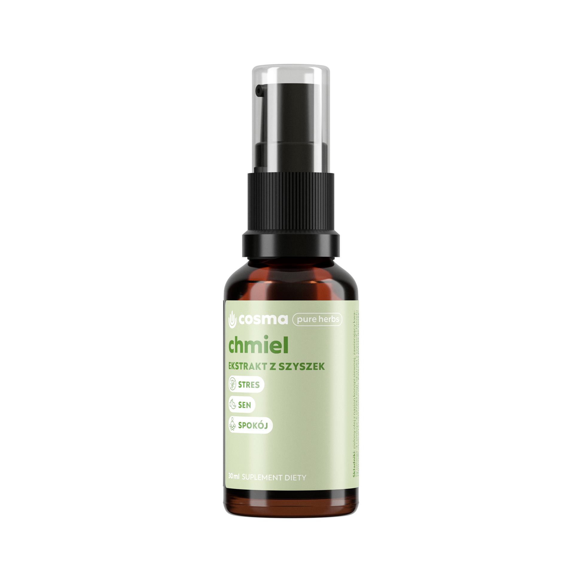 Ekstrakt z szyszek chmielu pozyskany metodą CO₂ w oleju konopnym – naturalne wsparcie wyciszenia i spokojnego snu.