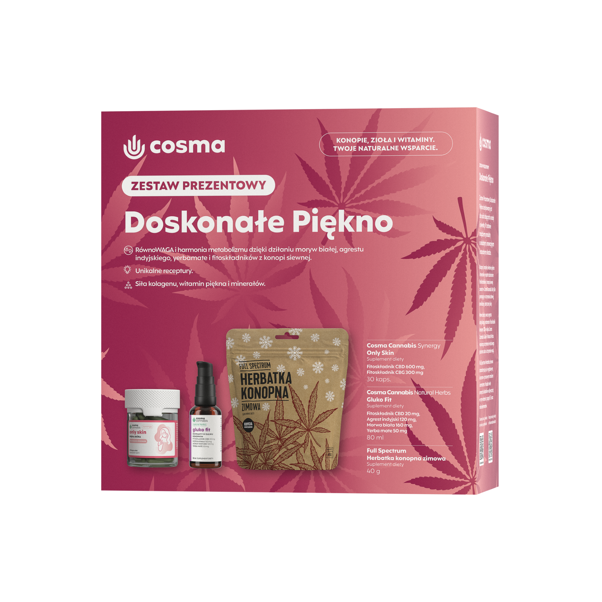 Zestaw Prezentowy Doskonałe Piękno powstał z myślą o osobach, które ze szczególną troską podchodzą do swojej skóry, włosów i paznokci. Wśród składników aktywnych w produktach wchodzących w skład zestawu, znajdziesz między innymi: kolagen, biotynę, cynk, selen, yerba-mate, morwę białą, algę, kwasy omega-3 i omega-5, witaminy A, E i C oraz wiele więcej.