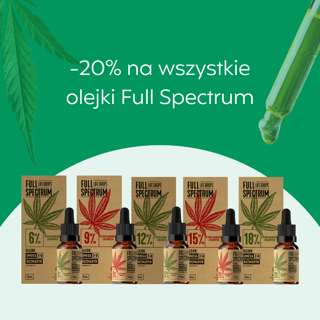 Prosty, czysty skład, pełne spectrum kannabinoidów i wysokie stężenia - takie właśnie są nasze olejki Full Spectrum. Tylko do końca miesiąca, z kodem "PAZDZIERNIK", kupisz je aż 20% taniej.